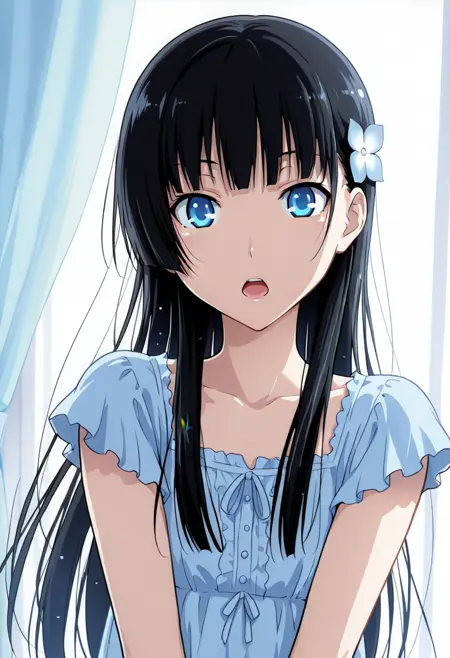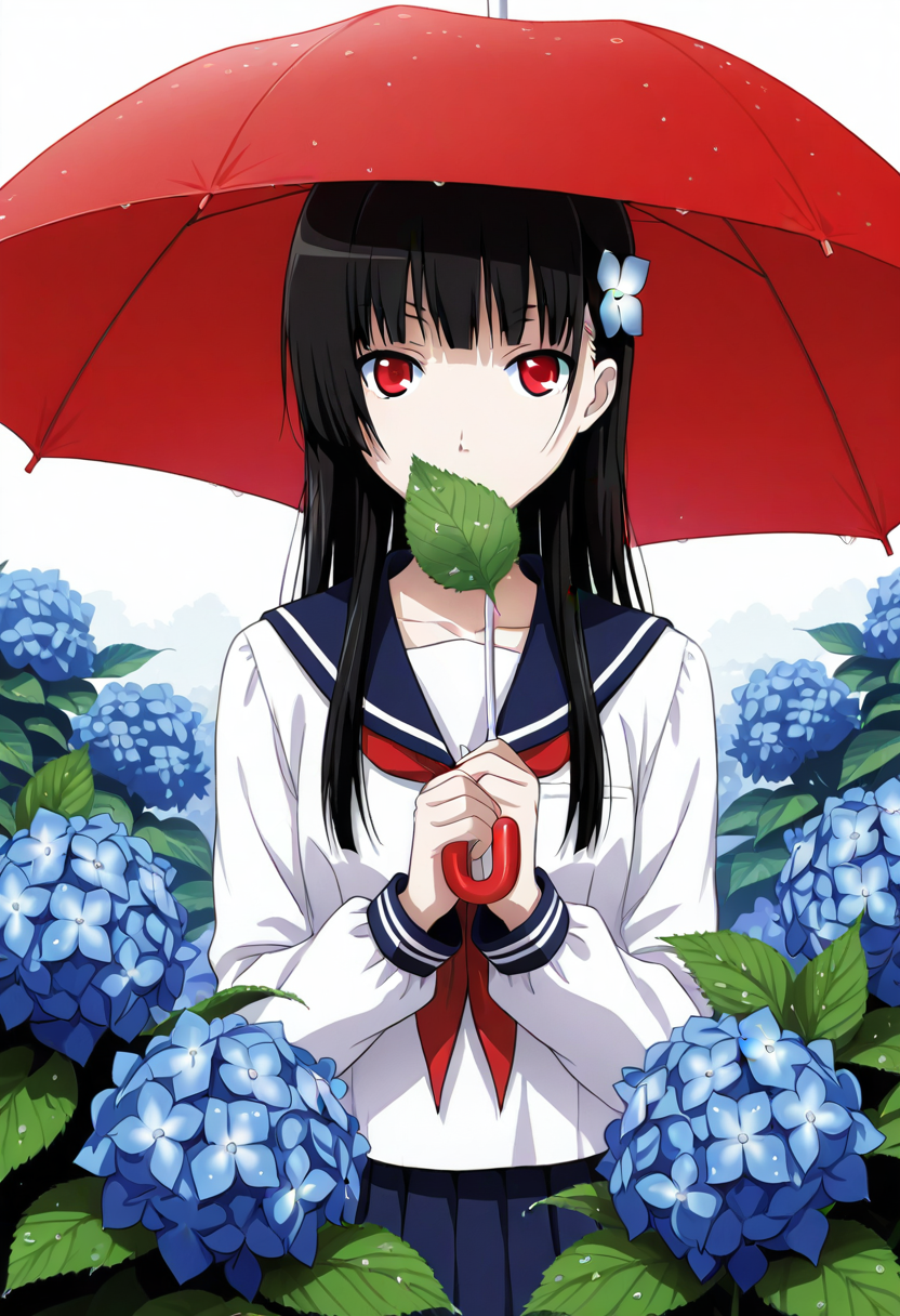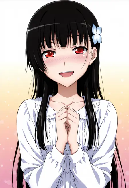 sanka rea、黒髪、赤い目、髪の花、ロングヘア、ヒメカット