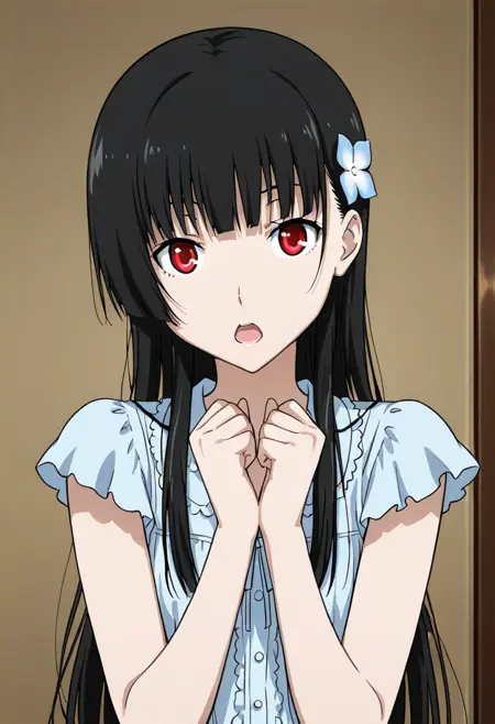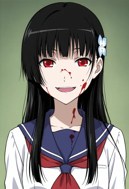 アニメでは、ゾンビになる前後で目が赤または青になります。指定しない場合、赤い目を持つsanka reaが生成されがちです。