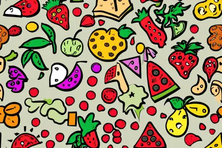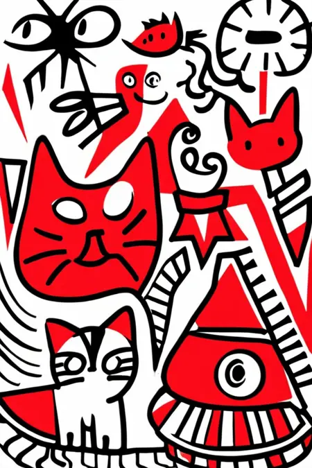 添加“被各种形状包围”、“有许多形状”、“被不同的涂鸦环绕”、“一堆不同形状”会使图像更具“涂鸦感”。