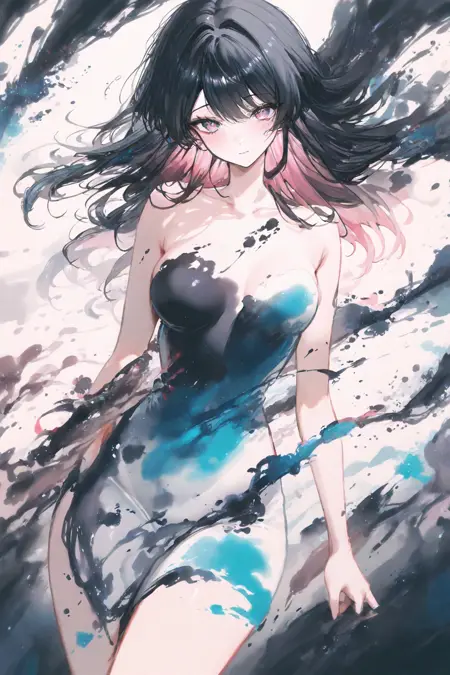 这是一个水墨画风格的LoRA,同时带有泼墨效果。