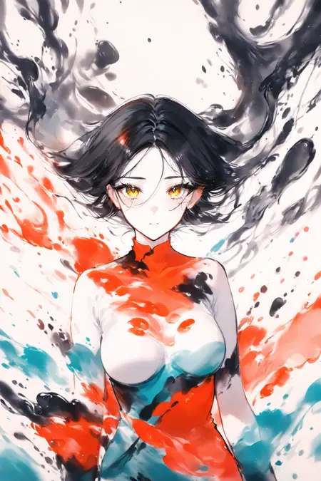 这是一个水墨画风格的LoRA,同时带有泼墨效果。