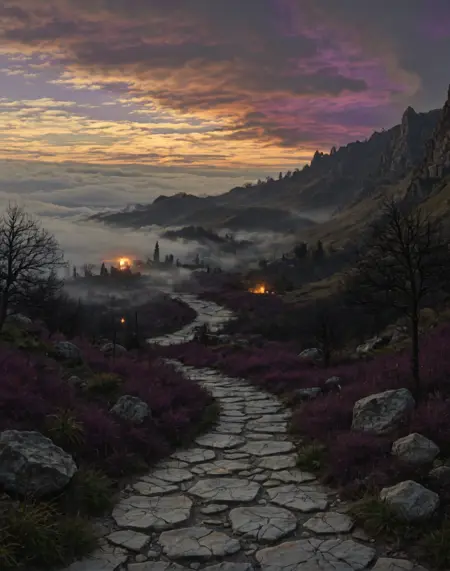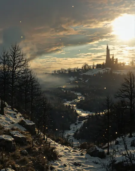 TL;DR; 様々な工業風風景をボリュメトリックライティングと大気の奥行きで描画します。暖かい夕暮れのオレンジと涼しい影の前景とのコントラストの高いシーンを生成。シルエットの定義、煙・雲の形成、工業的要素を含む環境ムードライティングに優れ、自然と人工構造物の間に強力なビジュアルな緊張感を生み出します。