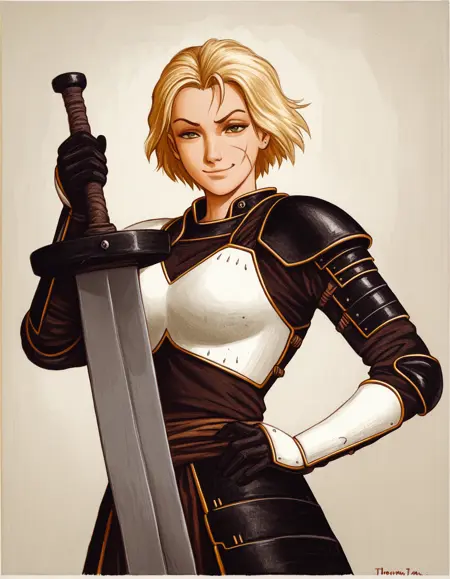 Noob AI v-pred 1.0 및 eps-pred 1.1 — 원본 데이터셋에 가장 근접. 사진과 회화, 드로잉의 스캔이기 때문에 색상이 다소 어두우며 약간 흐릿하고 페인트에 균열이 생기는 경향이 있다.