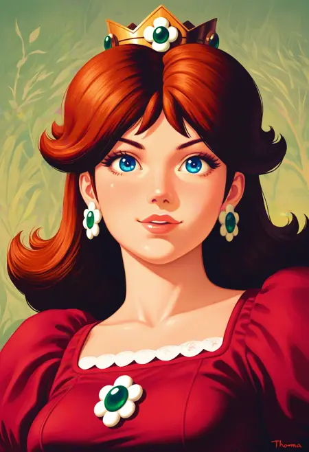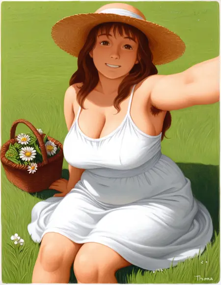 네. 몇 가지 내 기준에 맞지 않는 점들이 있다. 예를 들어, 화가의 가족, 특히 그의 여동생 아가테와의 유사성이 지나치게 강조되는 경향이 있고, 때로는 배경이 상당히 단조로운 결과를 낸다(단, "풍경"을 요청하면 달라지지만, 이는 나중에 설명). 일부 색상은 너무 밝아 눈을 강하게 자극한다. 또한 토마의 서명이 여러 번 나타나는 경우가 있는데, 이는 W. W. Denslow LoRA만큼 심각하지는 않다. 어쨌든, 나는 이미 데이터셋을 조정 중이며, 향후 새로운 버전을 기대해도 된다.