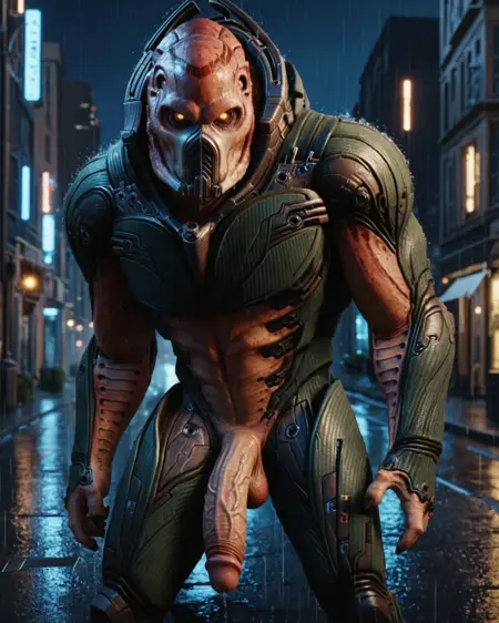 Originally a tribal and violent people, mutons were taken as ready material for experimentation by the Elders, who fashioned shock troops out of them by employing genetic manipulation and cybernetic augmentation. Since the conquest of earth, some human DNA made its way into the creatures too, creating a somewhat smaller but more versatile muton.