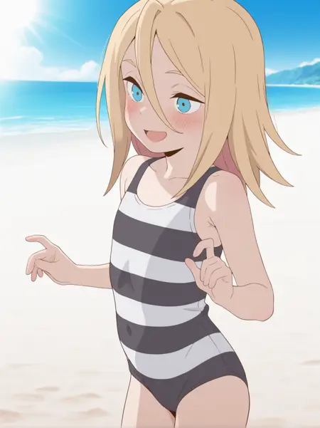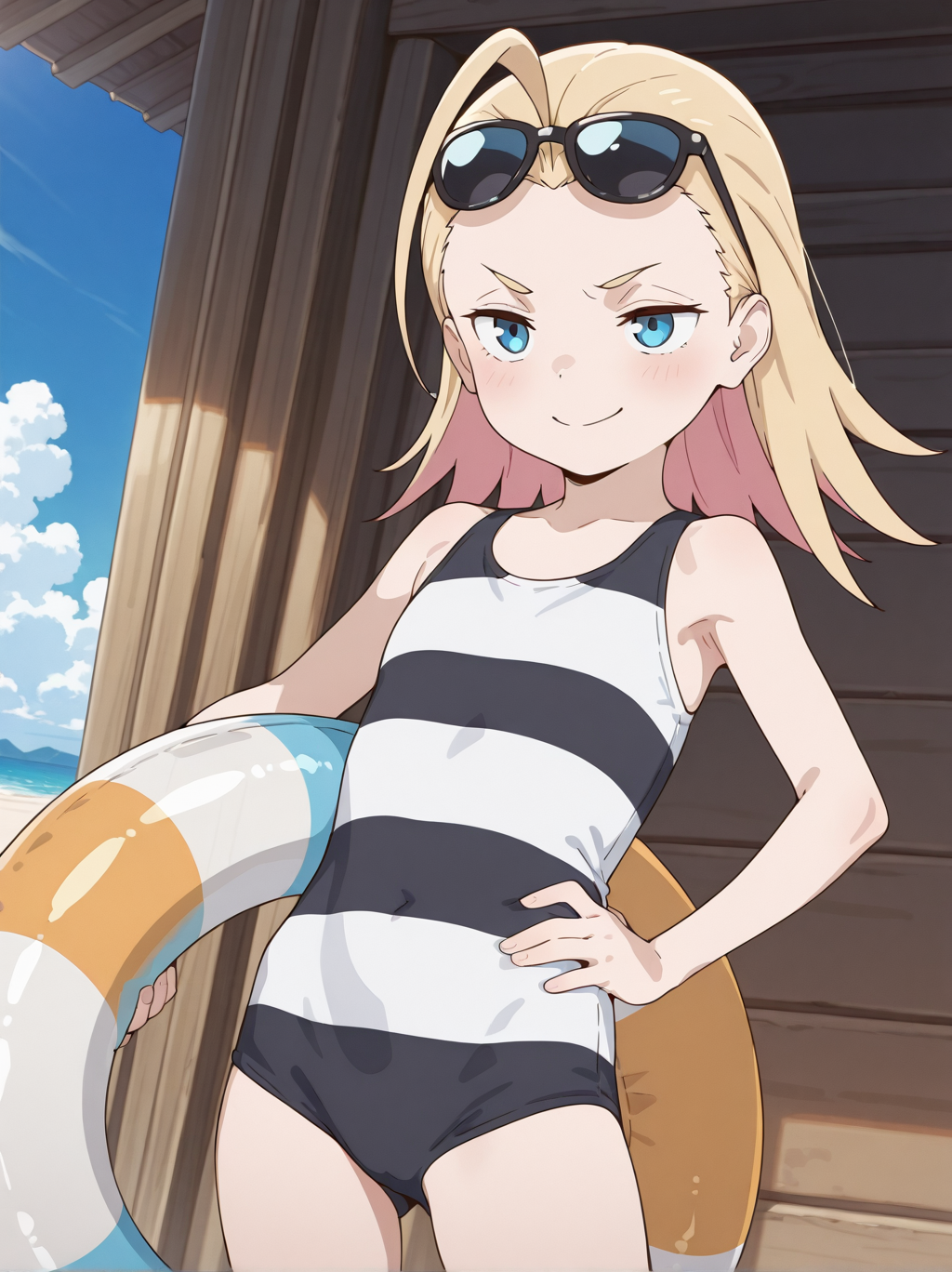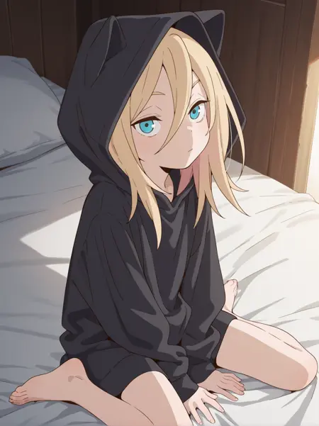 外見: blue eyes, blonde hair, long hair, forehead,antenna hair,eyebrows