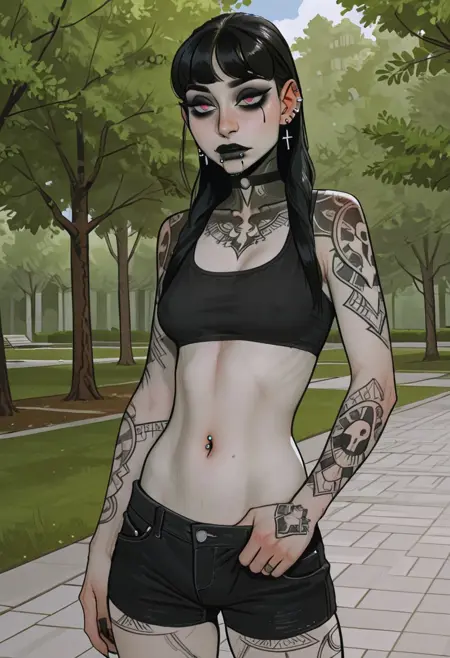 이것은 Incase가 제작한 캐릭터 펄이다. 앞머리, 땋은 머리, 피어싱, 문신, 그리고 음경이 있다.