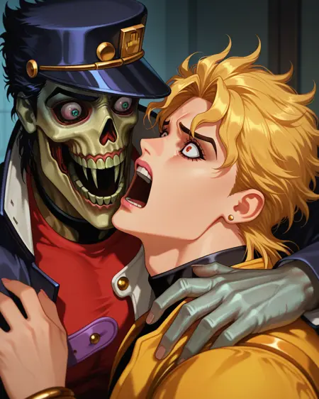 此模型生成经典、荒谬且夸张的恐怖图像。我的意思是,“天啊,我男朋友变成怪物了!”这种类型的图像——尖叫的女士和骷髅面孔的绅士。