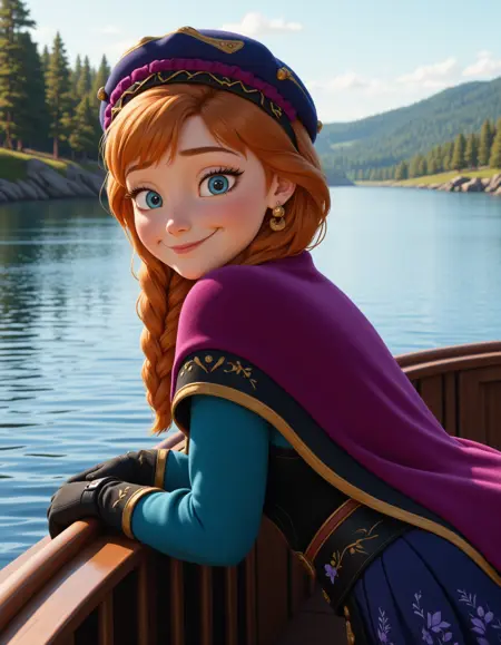 将生成《冰雪奇缘》中的安娜图像,此模型使用多种服装进行训练,您可以尝试以下一些款式。