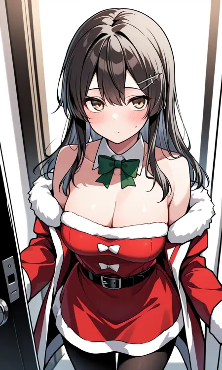 クリスマス衣装: oyashioxmasKC、ロングヘア、ドレス、髪クリップ、黒パンツホール、ファートリム、取り外し可能カラー、赤いドレス、緑のリボン、サンタコスチューム、黒ベルト、赤いコート、ファー付きドレス、緑のネクタイリボン