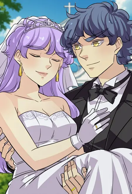 Seraphina:Seraphina、青目、マゼンタ髪、ロングヘア(または結い上げ)、カラーハイライト、ピアス