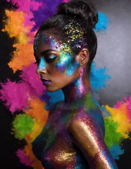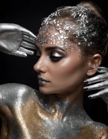 글리터 바디 페인트는 매력적이고 시각적으로 강렬한 예술적 자기 표현의 한 형태입니다. 이 트렌드는 미세한 글리터 입자가 함유된 화려하고 반짝이는 바디 페인트를 피부에 도포하는 것입니다. 그 결과로 움직일 때 빛을 반사하며 반짝이는 마법 같은 아름다운 외관이 만들어집니다. 글리터 바디 페인트는 몸의 윤곽을 강조하고, 특징을 부각시키며, 복잡한 디자인이나 무늬를 창조하는 데 사용될 수 있습니다. 이 스타일은 음악 페스티벌, 파티, 사진 촬영 및 개인이 자신만의 창의적인 면을 드러내고자 하는 기타 이벤트에서 인기가 있습니다. 세련된 분위기를 살리기 위해 약간 사용하든, 강렬한 인상을 주기 위해 과감히 사용하든, 글리터 바디 페인트는 개인의 스타일에 마법과 기발함을 더해줍니다.