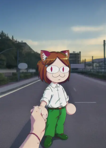 プロンプトは「ピーター・グリフィン」を使用してください。さらに、より良い画像を得るために「緑色のパンツ、白色のシャツ、茶色の靴、眼鏡、茶色の髪」といったタグも併用しています。