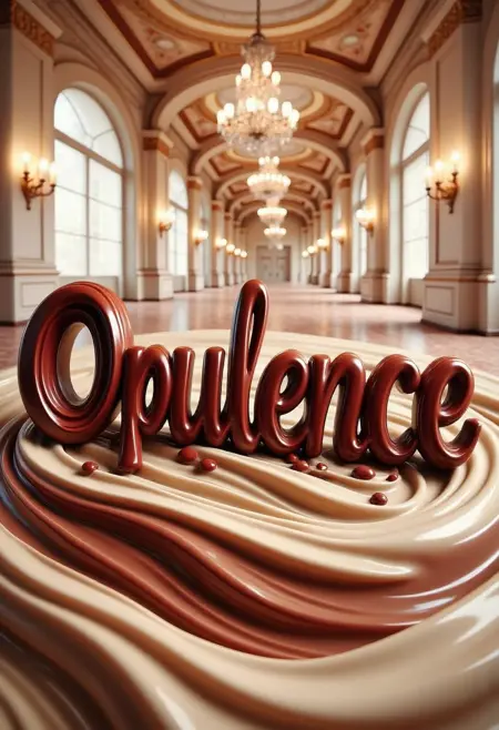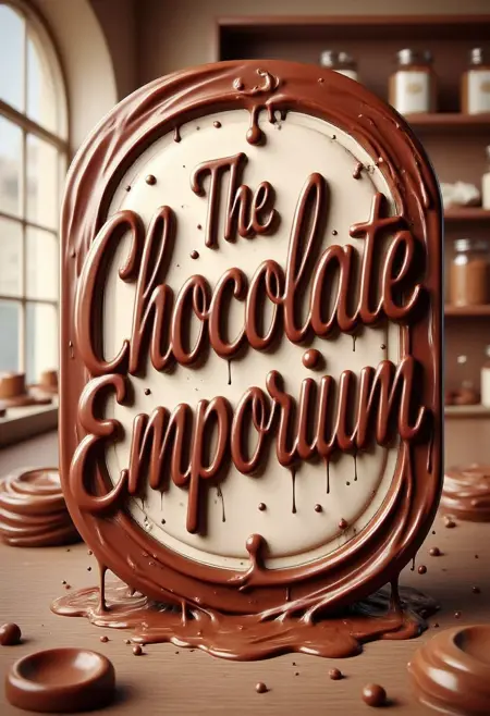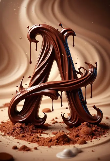- “Chocolate-covered letters,” “candy swirl typography,” “rainbow chocolate statue,” “whimsical dessert world,” “YFG-Ch0co drips on a fruit basket.”