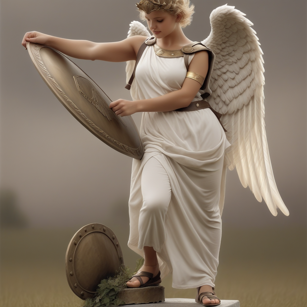 翼を持つ女神ニケ(ローマのビクトリア)が両腕を広げ、盾(欠損)を掲げて立っている。この像は元々カプア型のヴィーナスであったが、ローマがブリクシア町に贈呈する際に翼を加えてニケに変更された。