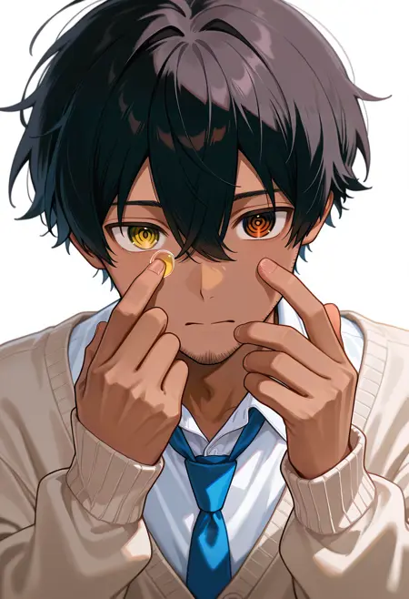 (カラーコンタクトでない画像の場合は、「colored contact lens」と「heterochromia」を削除してください)