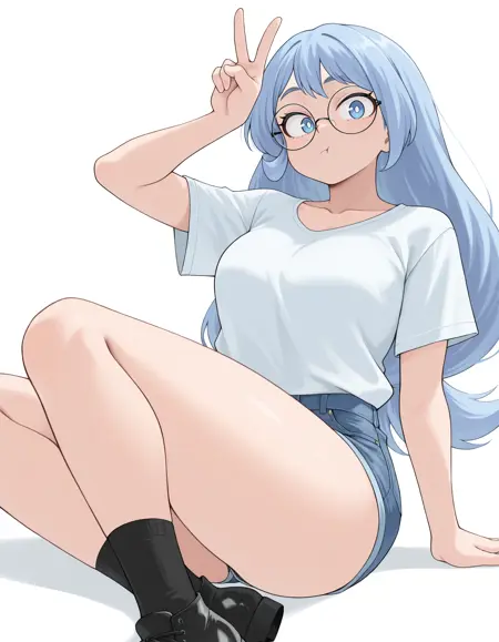 ベース外見: nejir3、青い目、青い髪、長い髪、髪を後ろに垂らす