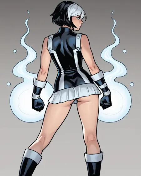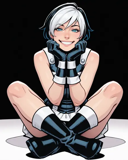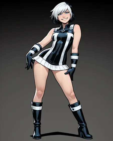 evabell, 이톤 헤어, 흰 머리, 검은 머리, 짧은 머리, 짧은 드레스, 장갑, 부츠