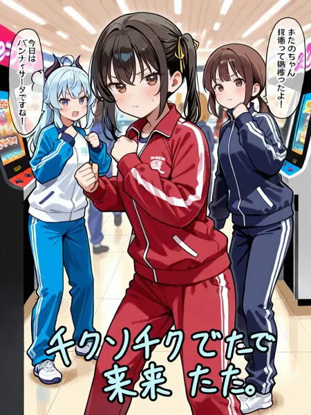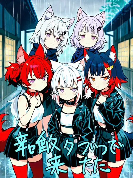 用于四名骑自行车来拍摄普丽卡照片亭照片的男性。通常你无法看到浅蓝色日文文字“我们骑自行车来这里”。