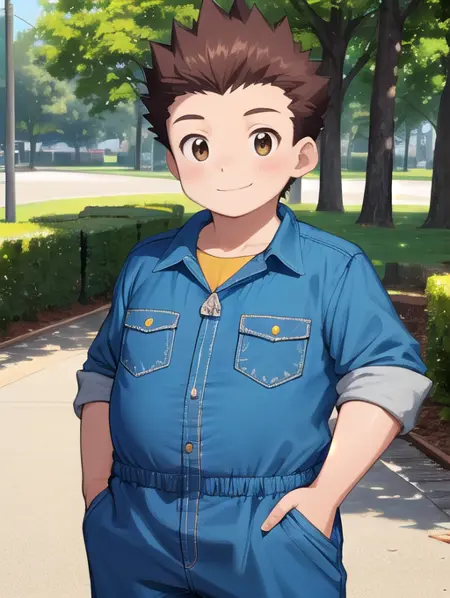 Junpei作为数码宝贝前沿人类角色中倒数第二个登场,加入了这个组合。Izumi的生成还需要一些时间,因为我在确保她的常规服装不会违反平台条款——我猜她的常规服装可能会被视为对未成年人的性化。无论如何,现在就让魔法流淌起来,尽情使用Junpei LoRA吧!