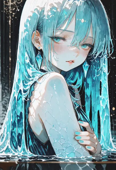 1girl, solo, anime screencap, limited palette, no lineart, watercolor \(medium\), painting \(medium\), traditional media,