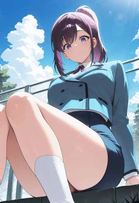 sung_jinah, 1girl, solo, looking at viewer, school uniform, skirt