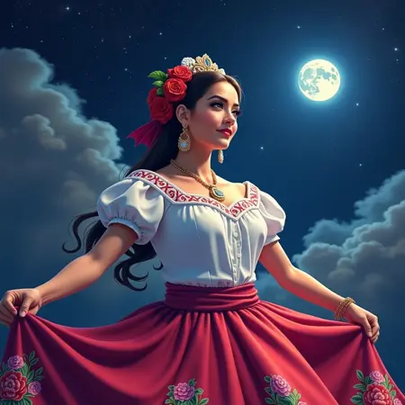 中国波布拉纳风格是墨西哥民间文化中备受珍视的象征,以其绚丽的美感和历史意义而闻名。这种传统服饰起源于普埃布拉州,体现了本土文化与殖民影响的丰富融合。通常,这套服饰包括一件闪闪发光的亮片上衣(camisa)和一条精致刺绣的裙子(falda),常饰有鲜艳的花卉图案和象征性元素。