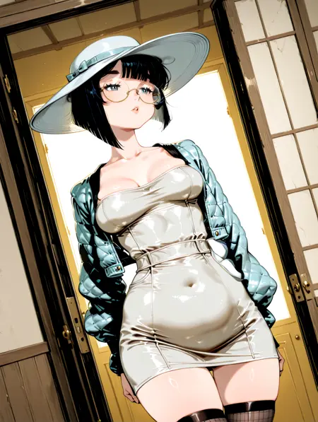 柔软的躯体,自然的身材比例,漆黑的头发,不对称的鲍勃头,柔和的小腹曲线,
