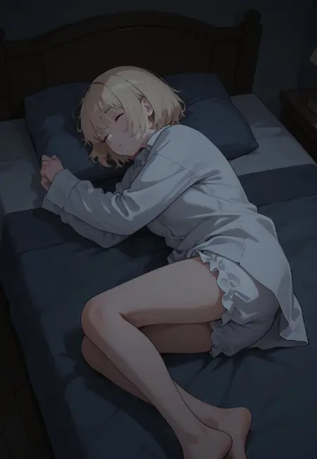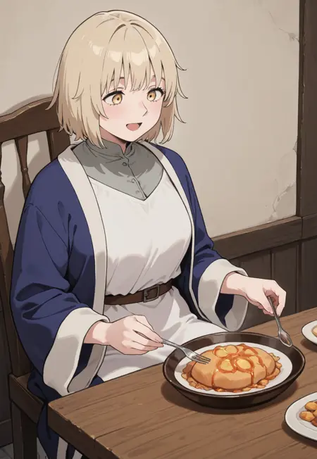 Dunmeshi_Falin, 1girl, solo, blonde hair, short hair, closed eyes, medium breasts,