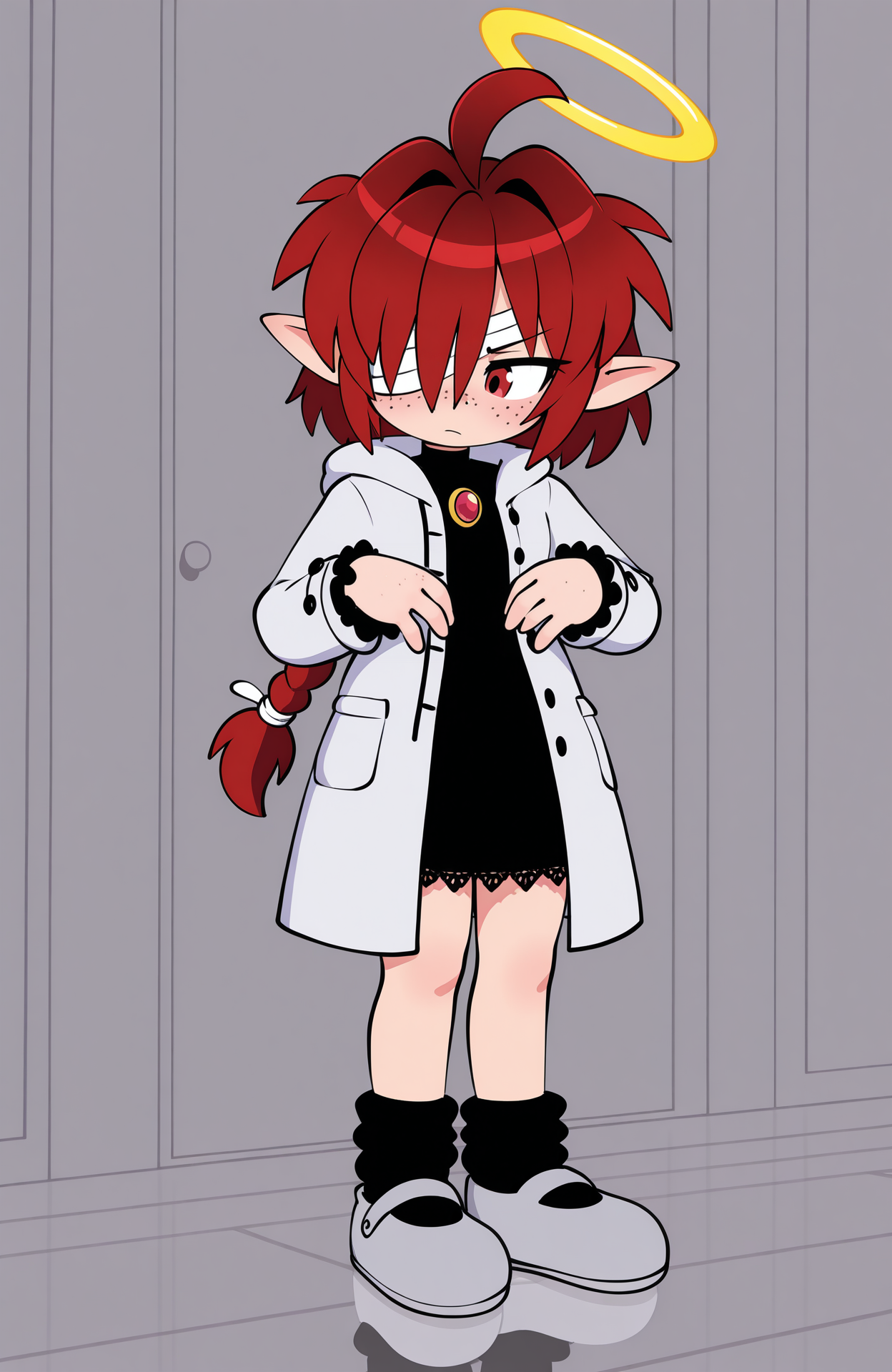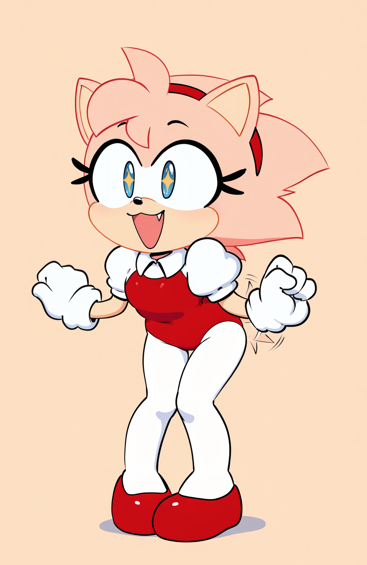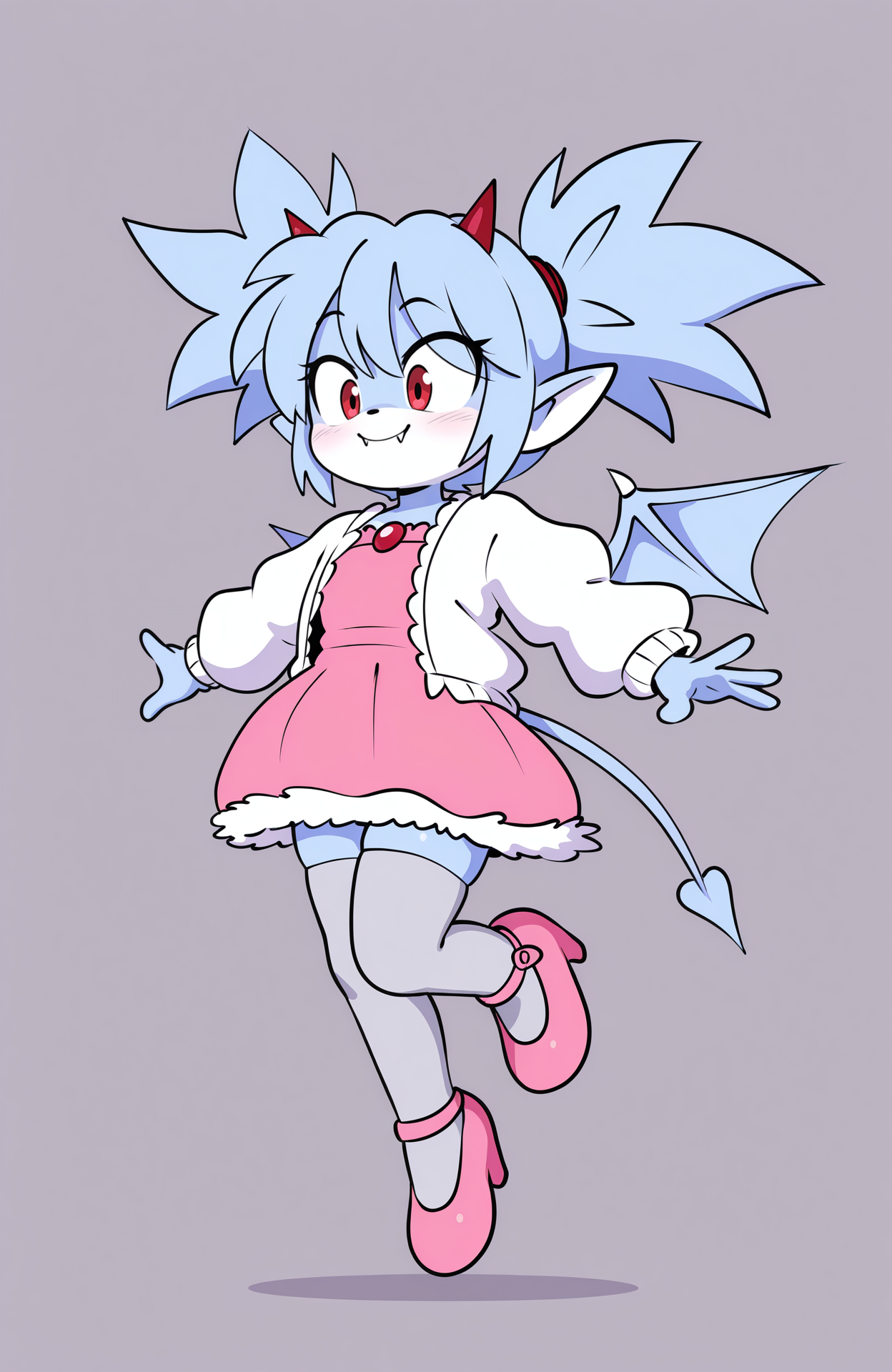 rush the rabbit, 兎の耳, 兎の尾, 青い毛, ピンクの目, 赤いネックレス, 白い手袋, 赤い靴, 白い靴, ブーツ