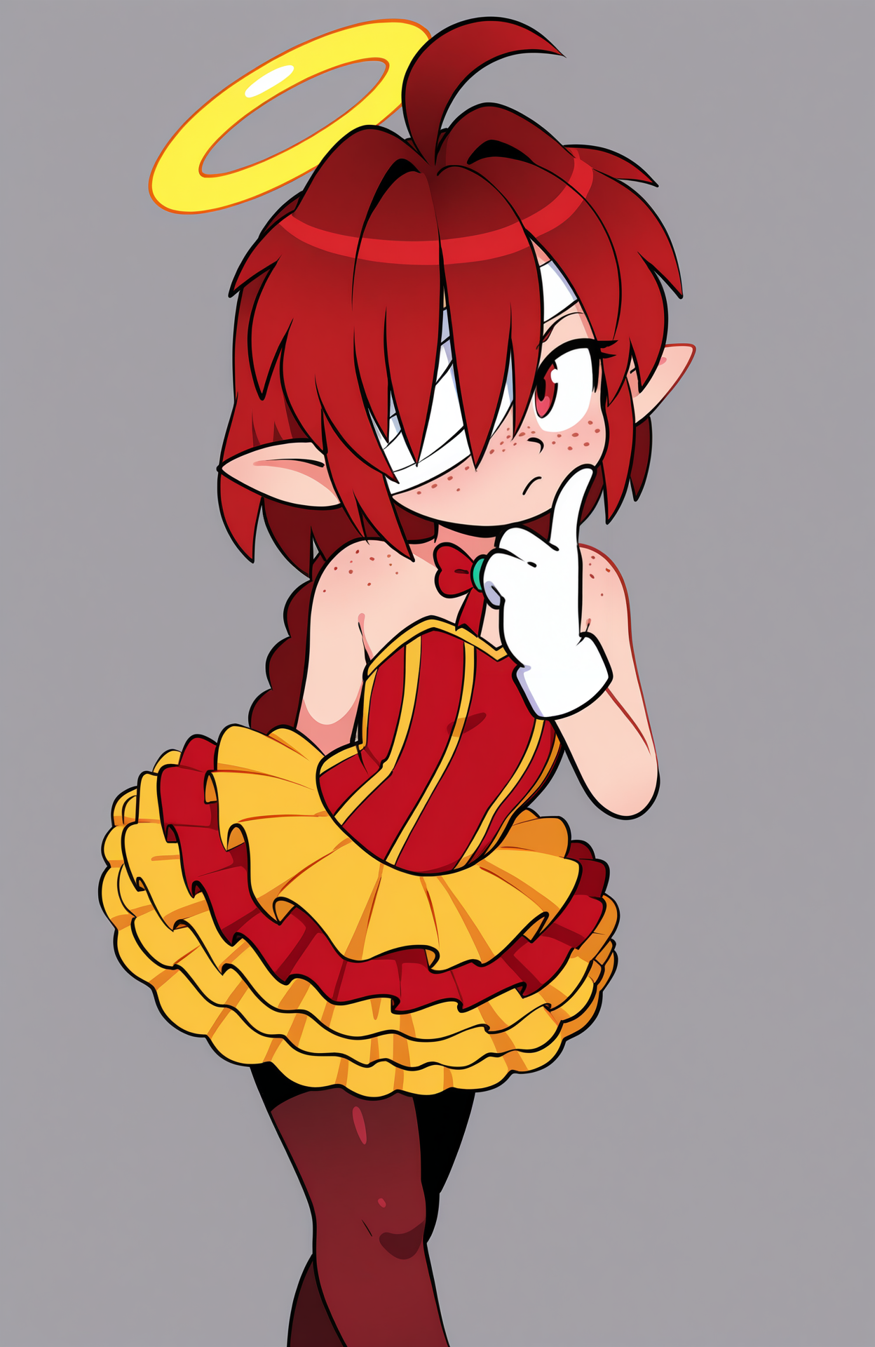 luana the cat, オレンジ色の毛, 赤い髪, 黄色い目, 胸, 猫の耳, 猫の尾, 黒いタンクトップ, 茶色のジャンプスーツ, 開いたジャンプスーツ, 茶色のズボン, 青いスニーカー, 白い手袋