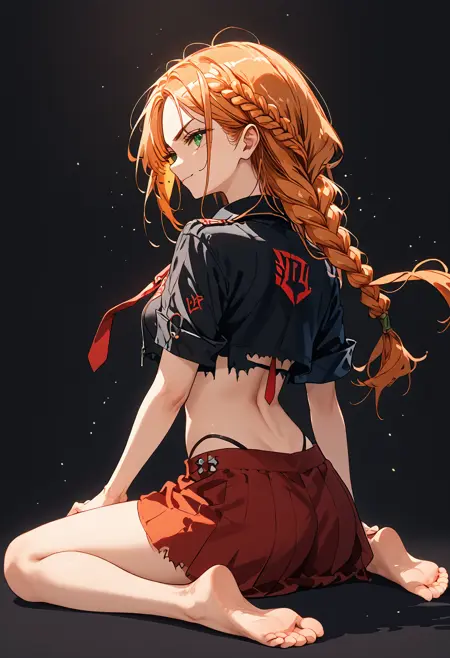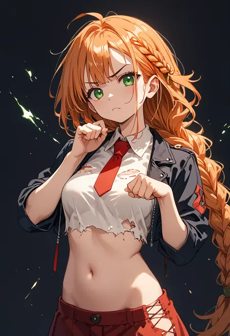 | 학습된 단어 | Tu the Magic, 1girl, slim, tall, very long orange hair, very long plaited braid, green eyes, medium breasts복사됨! Tu the Magic, 1girl, slim, tall, very long orange hair, very long plaited braid, green eyes, medium breasts, cropped beige cropped shirt, medium breasts, loosely tied red necktie, skimpy torn red skirt, cropped black jacket (half sleeves), barefoot복사됨! |