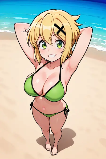 1소녀, 싱글, hdkirikagi, 단발, 금발, x 헤어 액세서리, 녹색 눈, 빛나는 피부