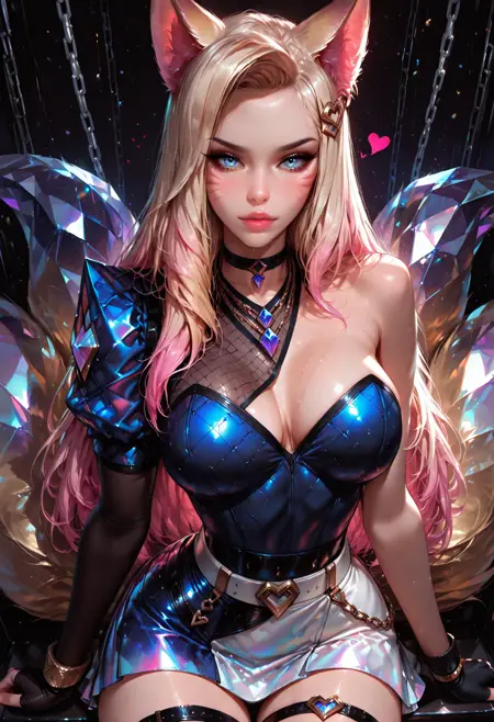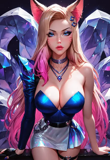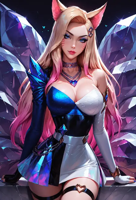I'm not good with LoRA training, but KDA Ahri is my favorite fictional character, and I really needed that Pony version of the face in Illustrious.