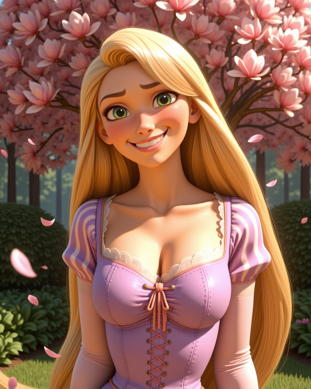 ラプンツェルの画像を生成します。このLoRAは複数の衣装で学習されており、以下の衣装をお試しください。
