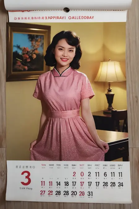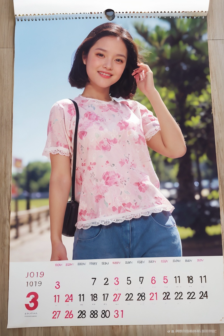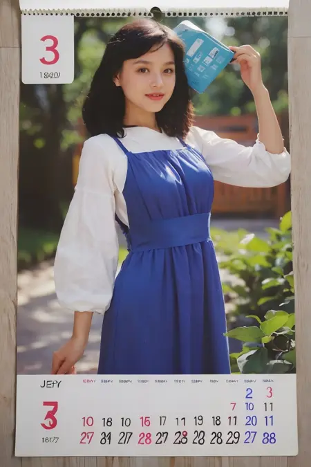 您可通过核心触发词 + 画面中的内容进行描述,例如日历中的场景、人物姿势、穿着的服装等。