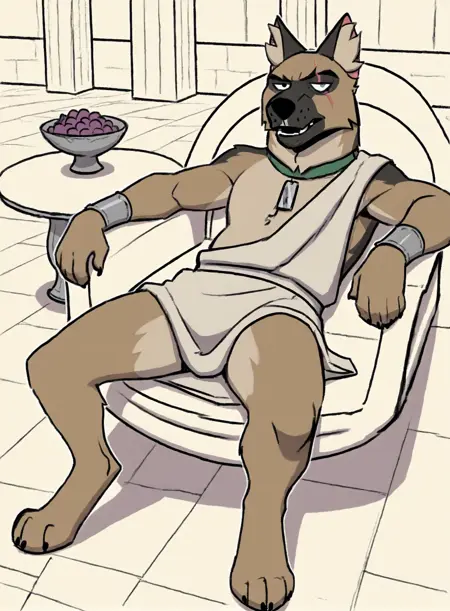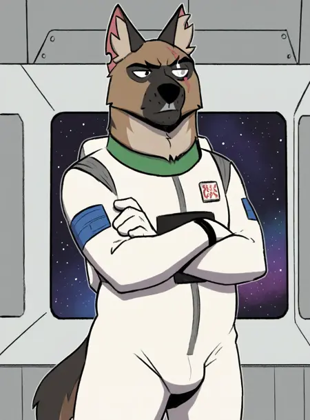 v1 推荐标签:成熟男性、年龄增长、德国牧羊犬、眼部疤痕、虹膜异色症、黑灰眼睛、狗牌。