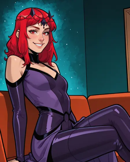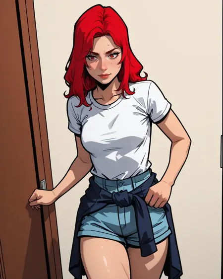 Triggers: amaranth, red hair, red eyes, bodysuit, cleavage