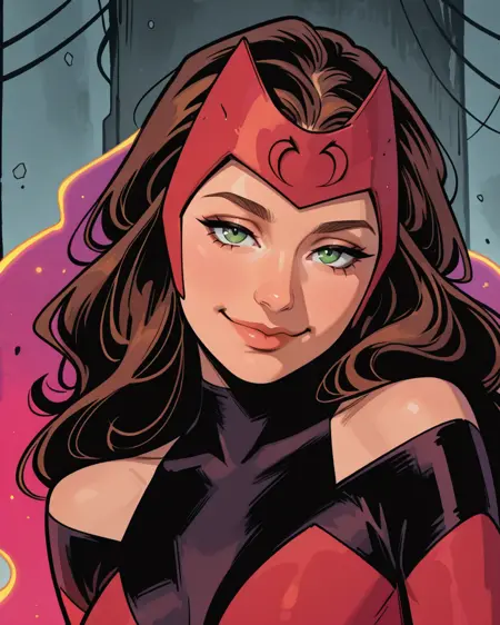 Wanda Maximoff aka the Scarlet Witch from Marvel Comics. Her current costume in the comics inspired by the Hellfire Gala costume.