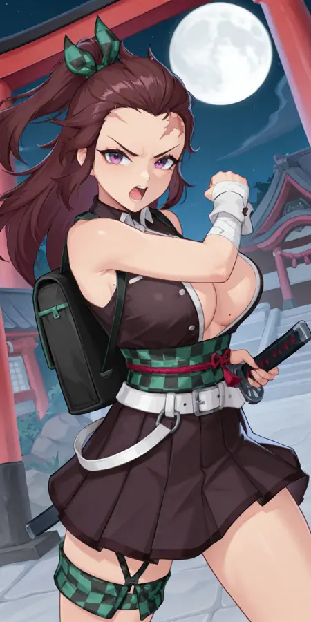 主要标签:aquasera,紫色眼睛,棕色头发,长发,高马尾,额头疤痕,胸部痣。