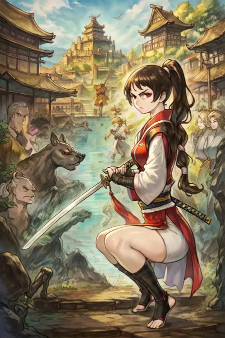 Ikusyという伝説のイラストレーターのスタイルを模倣するLoRA。Ikusyは『Octopath Traveler』や『Triangle Strategy』などのゲームのアートを手がけた。