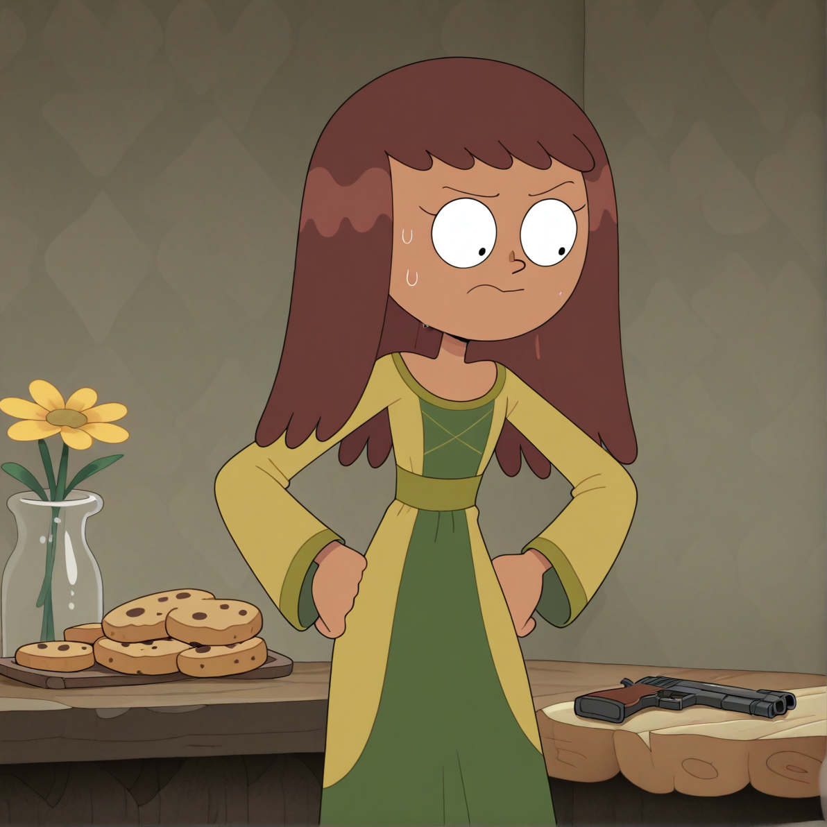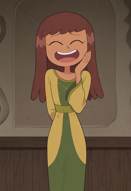 basic prompt: annebochairz, 1girl, solo, brown hair, long hair, dress, dark skin, long sleeves