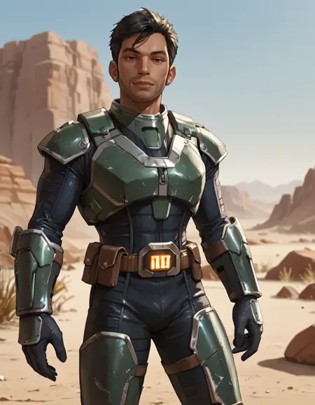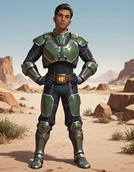 breastplate, shoulder armor, body suit, wrist bracers, gloves, belt, pants, armored knee boots