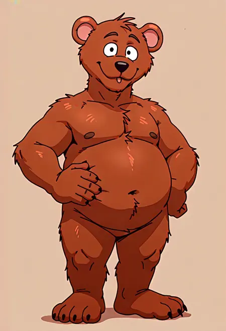BBYBearSS, 1boy, thick brown furry body, large black eyes, rounded ears, chubby