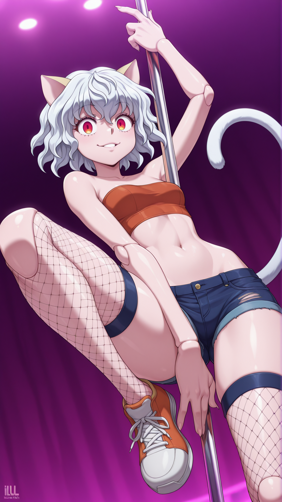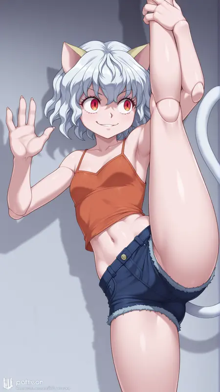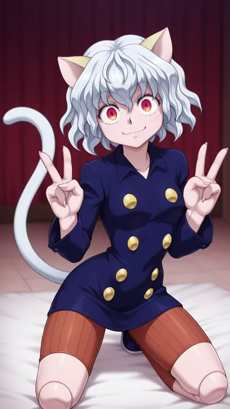 ベースプロンプト: illupitou、猫の耳、猫の尾、白髪、赤目、関節、(4本指:1.2)