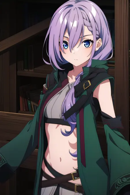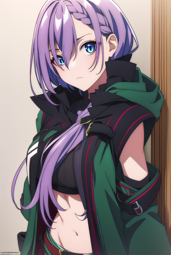 luna, long hair, purple hair, braid, hair between eyes, braided bangs,