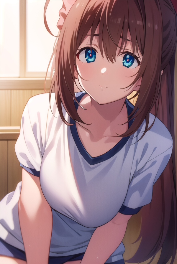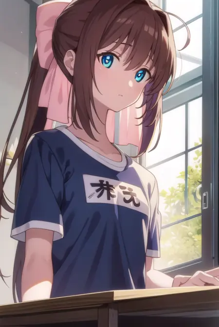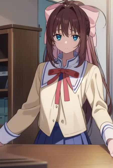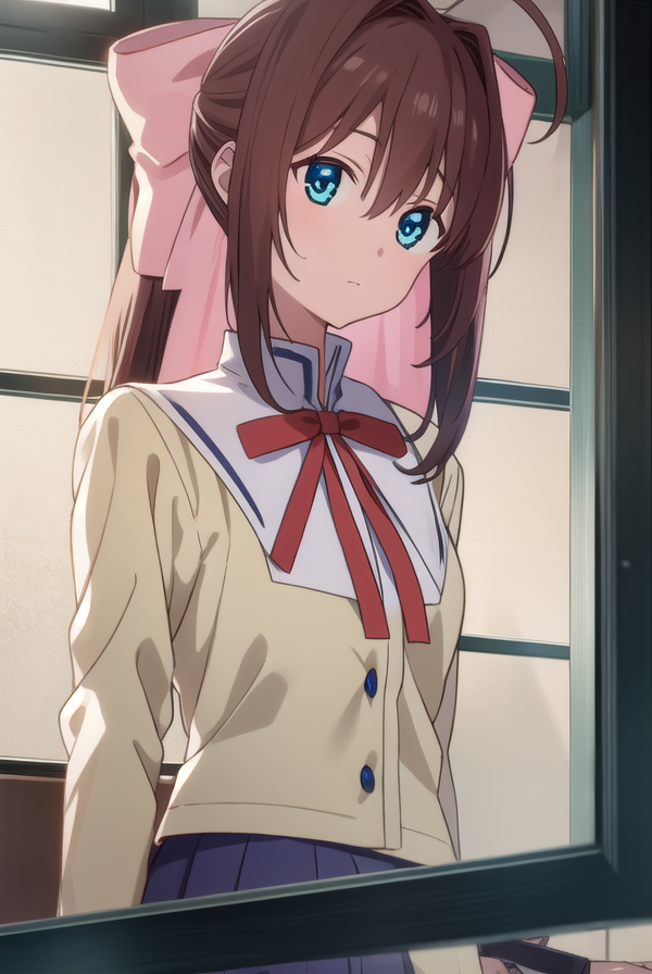 otome asakura, 長い髪, 棕髪, リボン, アホ毛, 髪のリボン, ピンクのリボン, 青い目,