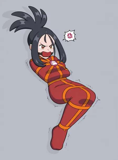 Fighting: fighting type, fighting symbol, red bodysuit, orange harness