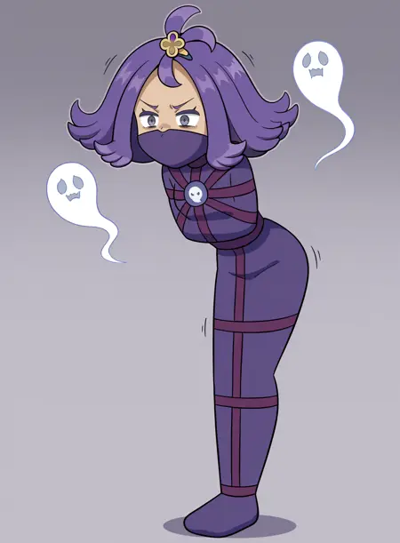 Ghost: ghost type, ghost symbol, purple bodysuit, purple harness