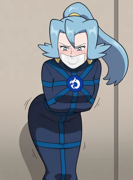 Water: water type, water symbol, blue bodysuit, blue harness